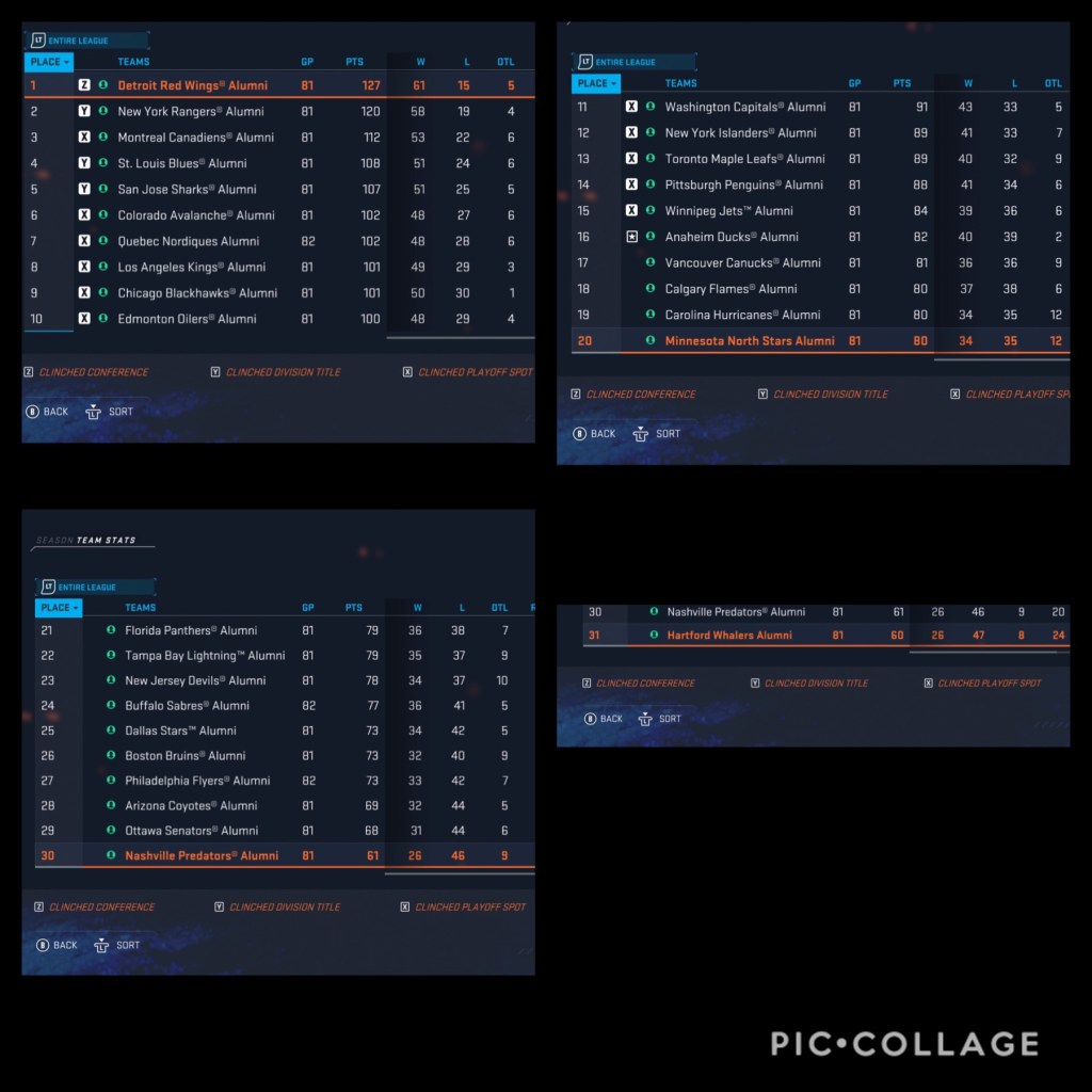 So without any further ado, here is an overview of our sim for NHL 20 Alumni Season with team additions, subtractions, sim settings and results: