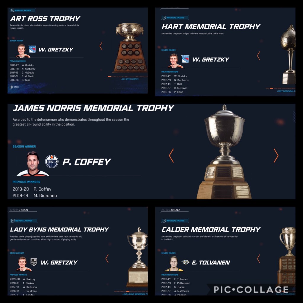 The overall experience was a bit different than the NBA 2K simulation. Having Alumni teams over All-Time made provided a stark difference in overall experience. It was awesome to see some of the top teams in history remain at the top, while watching others falter like in the other sim. It was also pretty dope seeing “The Great One” ascend to his virtual throne in multiple categories and even battling himself to reign supremacy of the league. Hopefully in future incarnations of the game, we will see the All-Time teams for their respective franchises. Overall, dope simulation and it looks like the St. Louis Blues are a GToAT in this virtual realm.